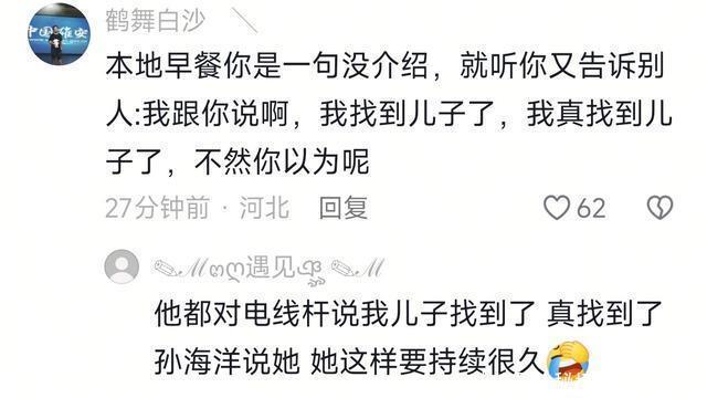 孙海洋说:自从叶锐聪回来以后,大喇叭就已经疯了,他大概要疯一个月才能罢休。 现在看看,确实这样,大喇叭带儿子去拍照片的时候问店员:你知不知道我儿子找到了? 去奶茶店的时候也要问店员:我儿子真的找到了,回来了,你知道吗? 粉丝们都要笑翻了,一岁的中年女人,这是要返老还童了吗?像一个三岁小孩一样,到哪里都要说儿子回来了。